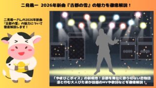 歌手二見颯一『古都の雪』歌詞の魅力とMVの見どころを解説!最新曲の新境地に迫る! 二見颯一さんの11枚目シングル『古都の雪』を徹底解説!京都を舞台にした切ない歌詞の世界観や、二見さんが凛と佇む姿が話題のMV、豪華制作陣の情報を整理。カップリング曲でのシティポップ風楽曲への挑戦など、ファン必見の聴きどころを凝縮してお届けします。 2026.03.07歌手男性歌手