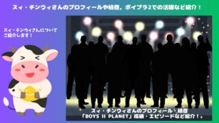 groupスィ・チンウィのプロフィール!経歴やボイプラ2での成績・エピソードを紹介! 多種多様なジャンルの音楽を日々聴き漁っている管理人が、気になるアーティストや音楽を独自目線でピックアップ。今回はオーディション番組「BOYS II PLANET」でセミファイナルまで進出したスィ・チンウィさん。プロフィールや経歴、エピソードなどをご紹介します! 2025.10.03group男性グループ