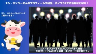 groupスン・ホンユーのプロフィール!経歴やボイプラ2での成績・エピソードを紹介! 多種多様なジャンルの音楽を日々聴き漁っている管理人が、気になるアーティストや音楽を独自目線でピックアップ。今回はオーディション番組「BOYS II PLANET」でセミファイナルまで進出したスン・ホンユーさん。プロフィールや経歴、エピソードなどをご紹介します! 2025.10.02group男性グループ