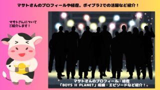 groupマサトのプロフィール!本名など経歴やボイプラ2での成績・エピソードを紹介! 多種多様なジャンルの音楽を日々聴き漁っている管理人が、気になるアーティストや音楽を独自目線でピックアップ。今回はオーディション番組「BOYS II PLANET」でセミファイナルまで進出したマサトさん。プロフィールや経歴、エピソードなどをご紹介します! 2025.10.01group男性グループ