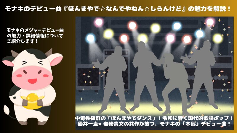この記事では、元イベント運営関係者である管理人の視点から、モナキの記念すべきデビュー曲の魅力や、中毒者続出の「ほんまやでダンス」、そしてファンが最も気になる配信・発売情報について詳しく解説します。