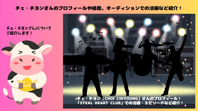 今回はオーディション番組「STEAL HEART CLUB」にベースポジションで参加されているチェ・チヨンさんについて取り上げてきました。