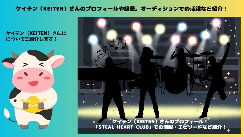今回はオーディション番組「STEAL HEART CLUB」にギターポジションで参加されているケイテンさんについて取り上げてきました。